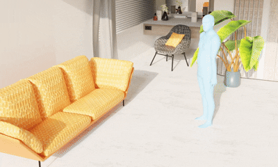 Using a Diffusion Model, we “sculpt” raw temporal data into fluid movement. However, instead of just generating an isolated action, our system continuously cross-references the scene’s geometry and the target destination. The output of is a rich, generative SMPL motion sequence.